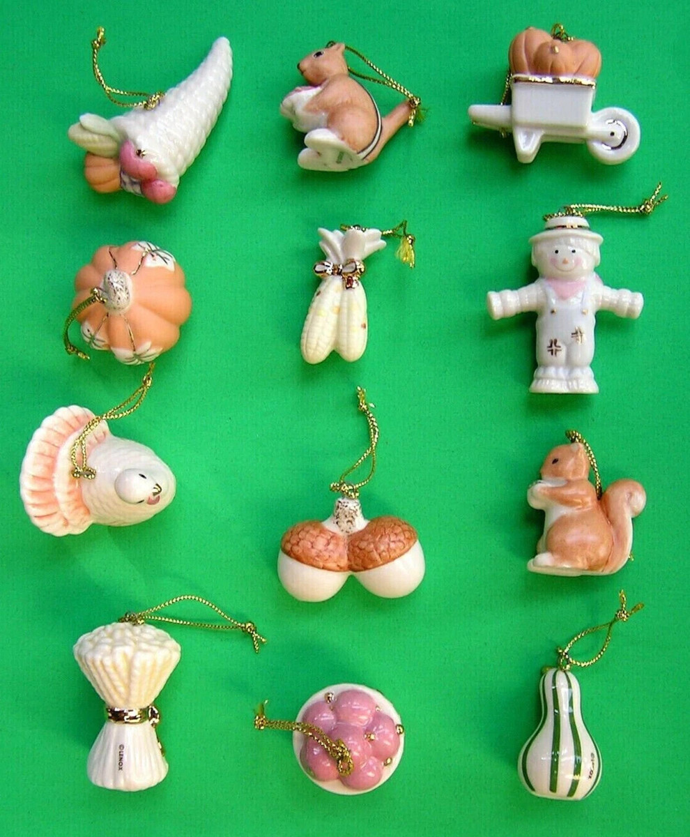Lenox Autumn Delights Miniature Tree Ornaments 12 Thanksgiving Turkey Corn NEW