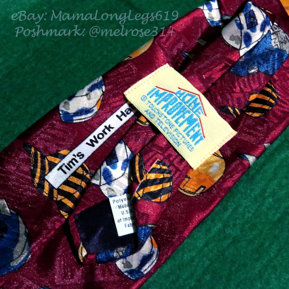 Vintage 1990s Home Improvement TV Show Necktie Tool Man Tie Handyman Hard Hats