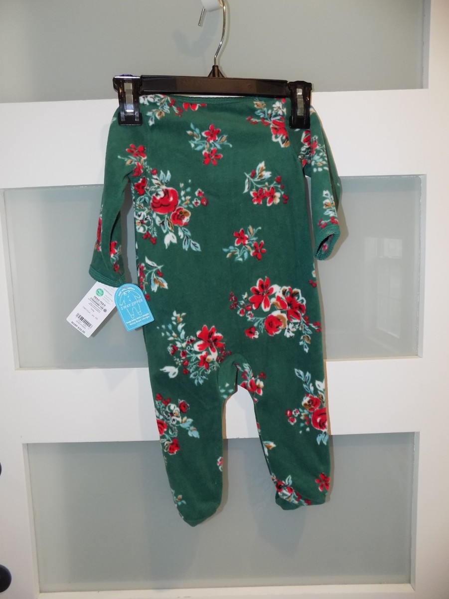 Carter's Green Floral Print LS 2 Way Zipper Footie Size 6 Months Girl's New