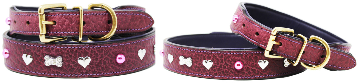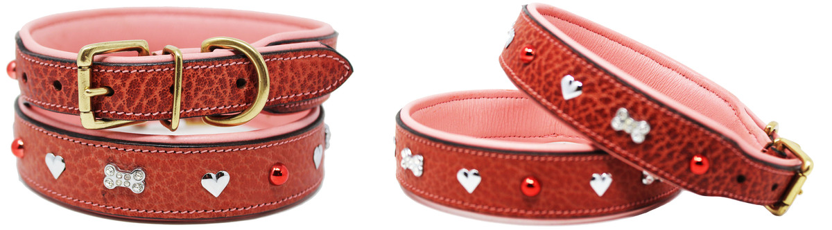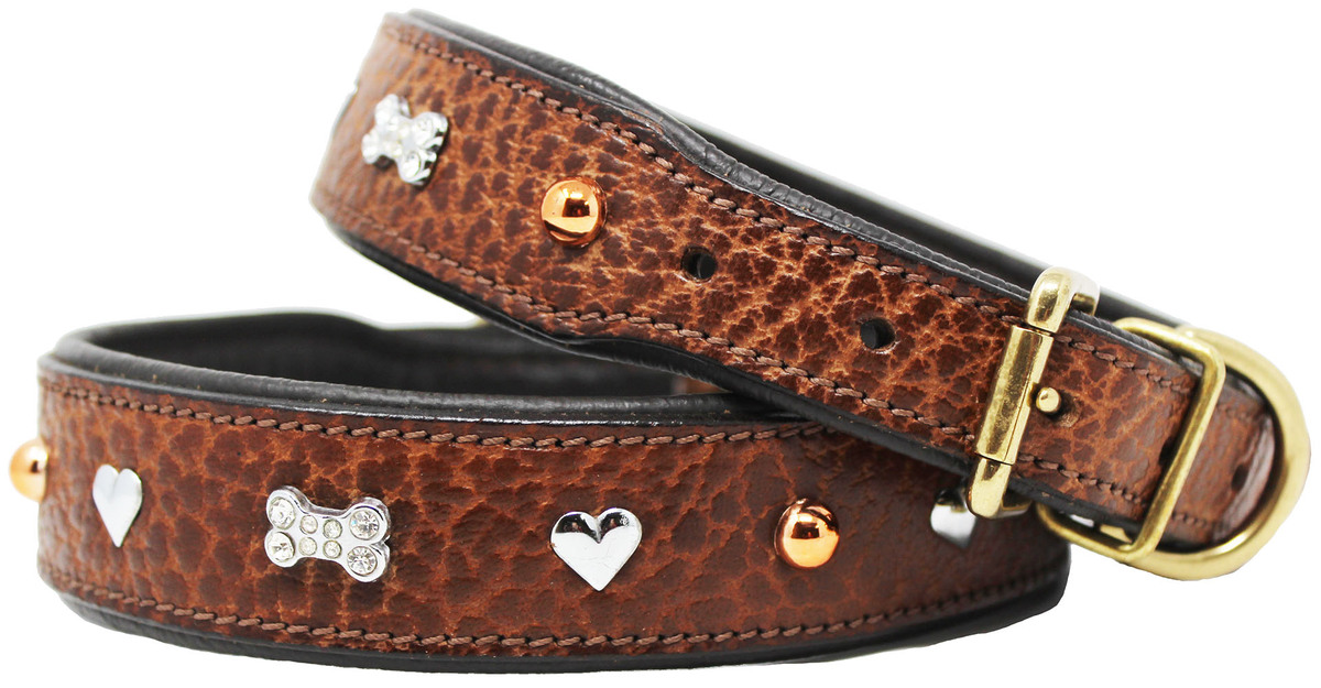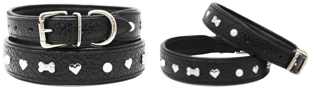 Soft Genuine Leather Padded Charm Dog Collar 60AA264