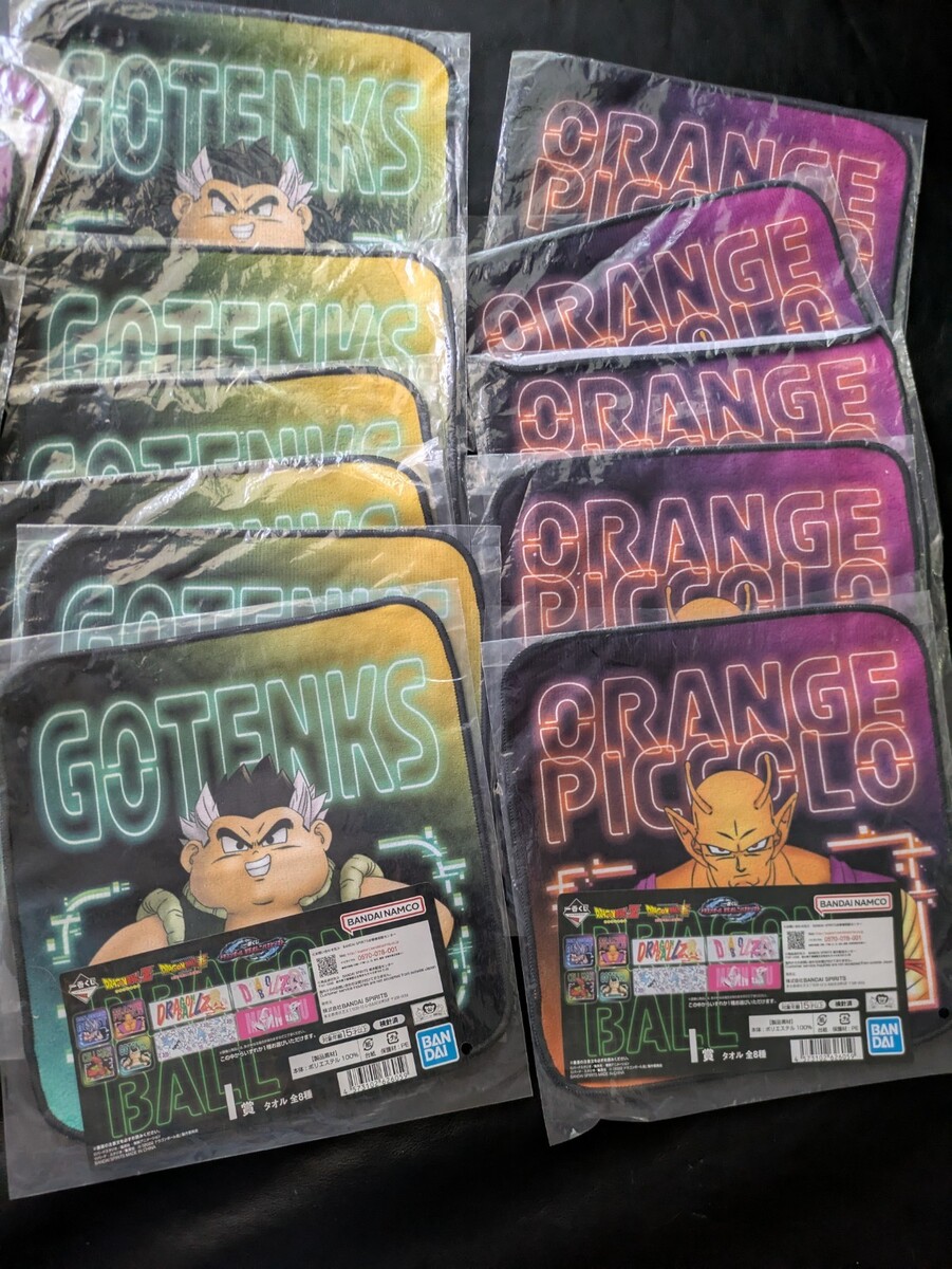 This product is a set of 22 Dragon Ball Super Hero Ichiban Kuji hand towels featuring characters like Piccolo, Cell, Gotenks, and Gohan. Manufactured by Bandai Namco in Japan, these towels are part of the Dragon Ball franchise and TV show. Each towel is a prize item from the Ichiban Kuji series, making them a collectible piece for fans of the Dragon Ball series. Perfect for displaying or using in any anime enthusiasts' collection, these hand towels are a must-have for any Dragon Ball fan.