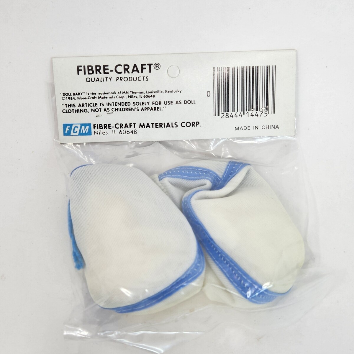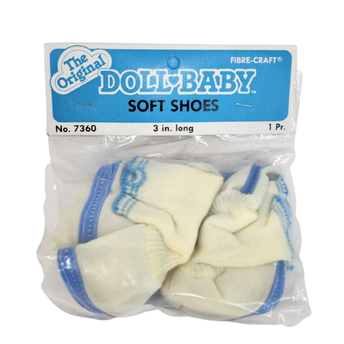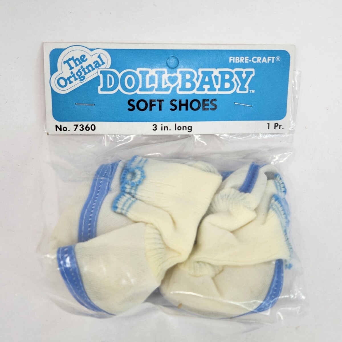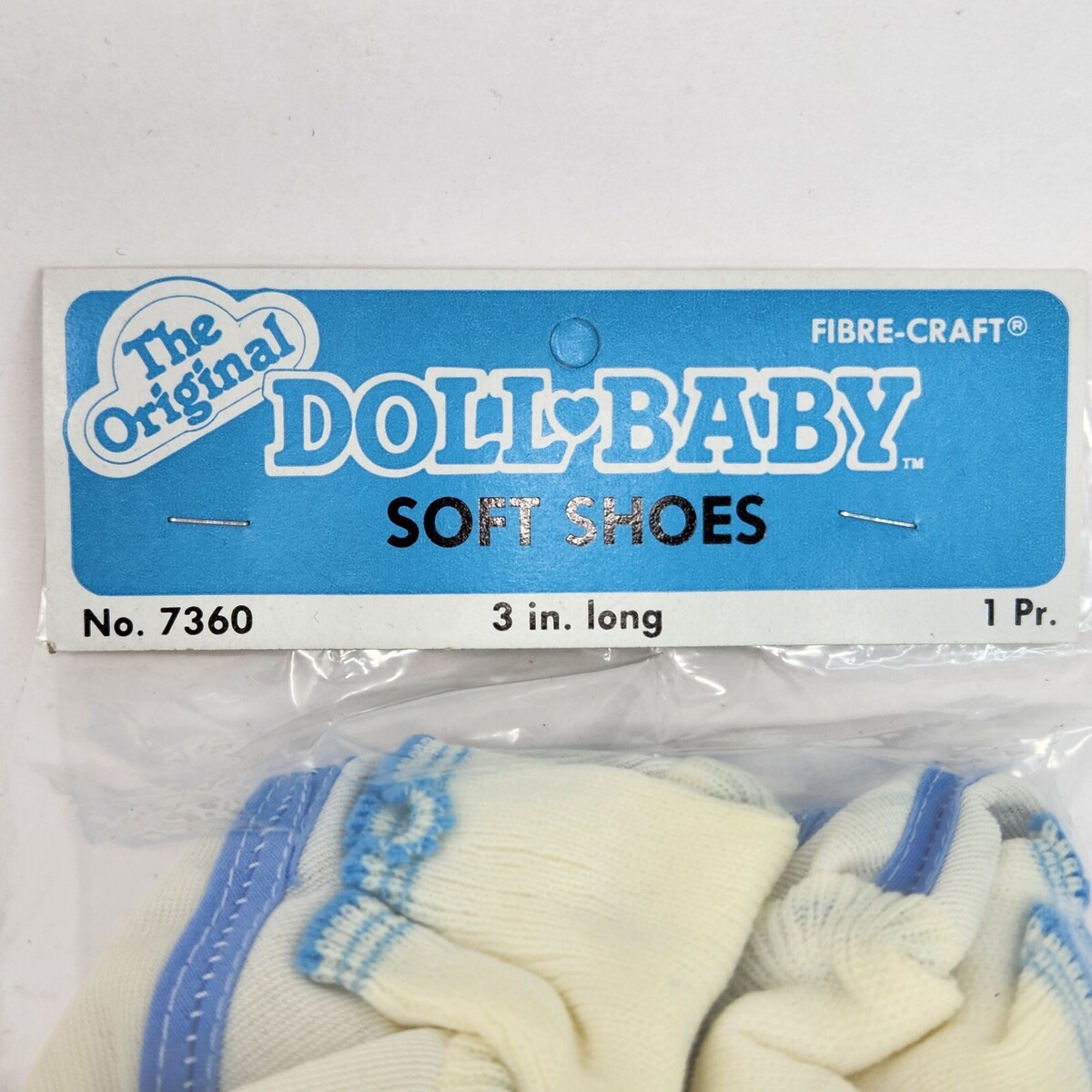 VINTAGE 1984 FIBRE CRAFT DOLL BABY 3" SOFT SHOES WHITE + BLUE NEW IN PACKAGE