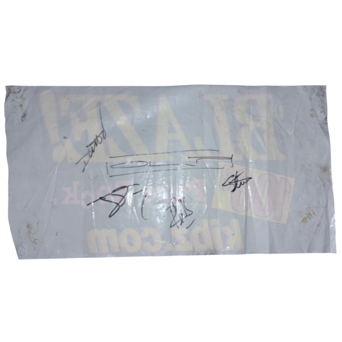 This is hand signed from a 2002 Fesitival in Greenwood, NE. It was set up for 3 stages but it rained heavily the night before and one sank a bit and wasn't fit to play on. The festival cut OLP but instead had them sit at a booth to sign autographs. Didn't know much about them at the time, wish I would have seen them now as they're a great band (in my opinion). Written with "[OLP]" in the middle of the autos.