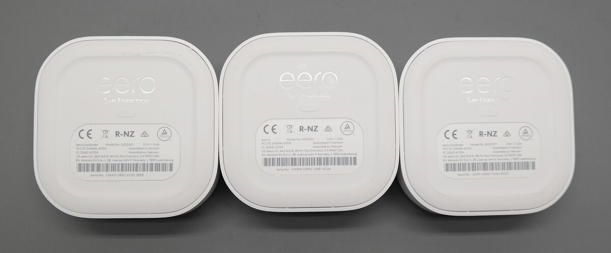 Description: Includes Wired eero 6, 2x Wireless eero 6 extenders, 3x power adapters, Ethernet cable. Scratches and scuffs on the bodies.