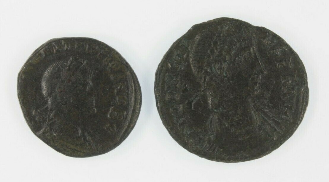 Antico Romanzo 2-Coin Set Imperatore Aurelian Antoniano Imperatore Valens AE3