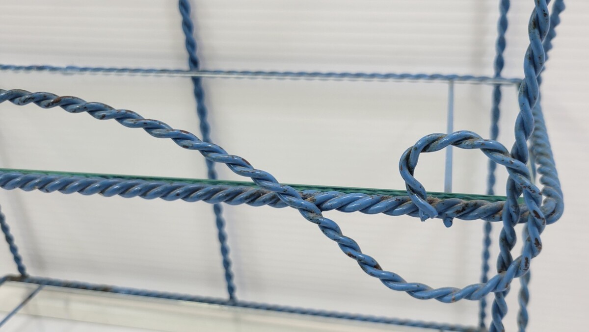 Vintage Twisted Metal Blue 3-Tier Hanging Wall Shelf