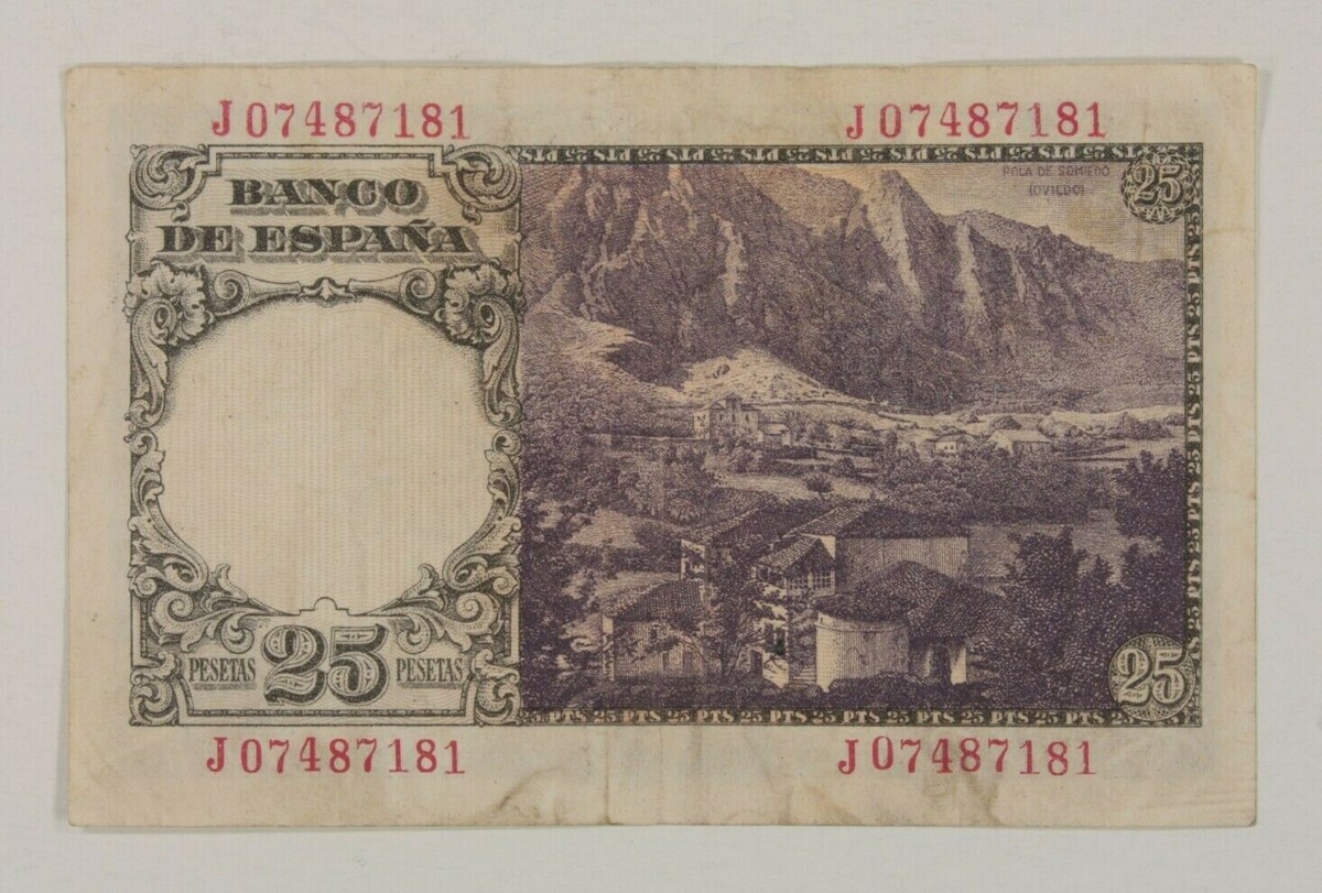 1946 Spain 25 Pesetas Note Very Fine+ (VF and similar items