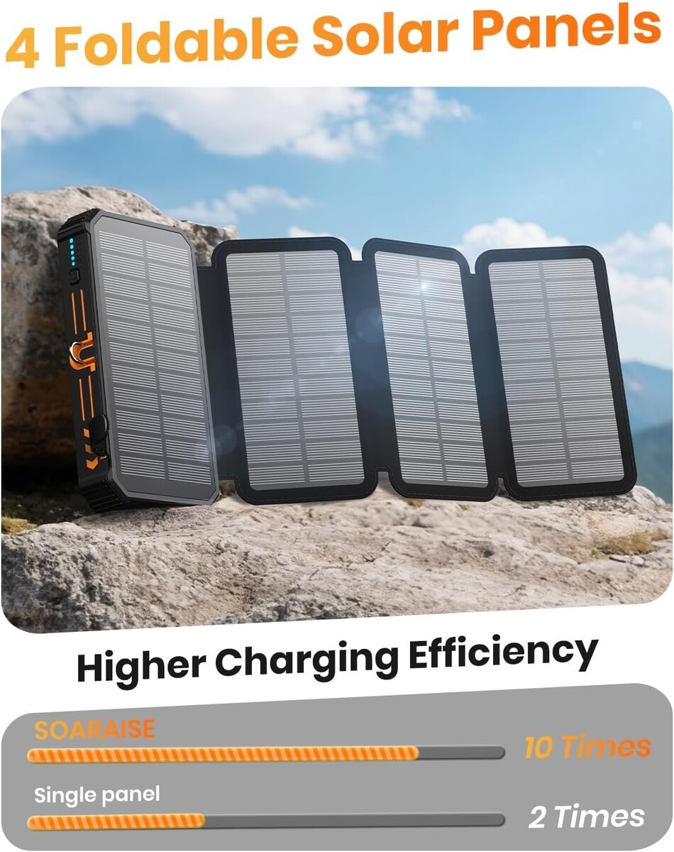 Upgraded High-Efficiency 4 Solar Panels: Charge up to 5 times faster than standard single-panel chargers. Keep your devices powered with eco-friendly solar energy anytime, anywhere.