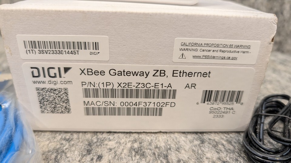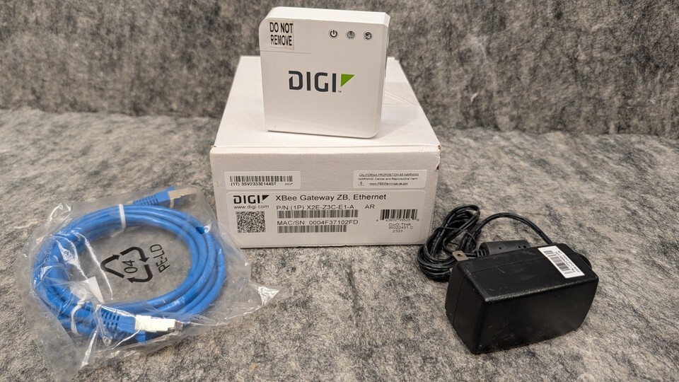 Digi XBee Gateway ZB Ethernet X2E-Z3C-E1-A w/ Power Adapter, Ethernet Cable