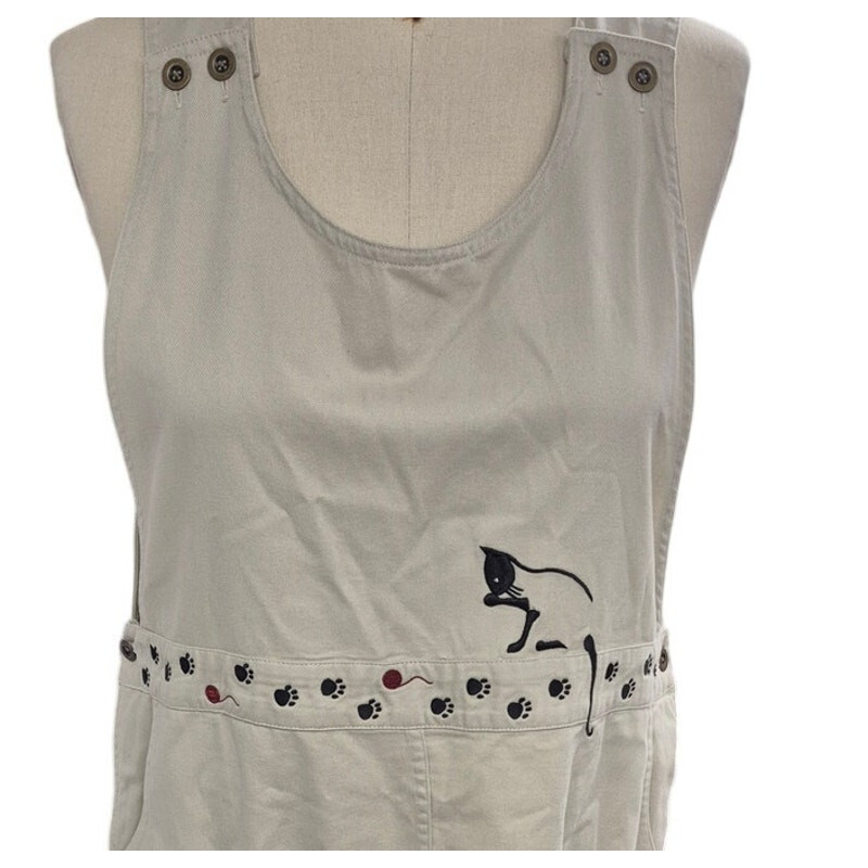 90s Vtg Christopher & Banks 100% Cotton Khaki Dress Cat Lady Design Pockets Sz L