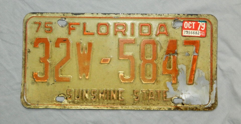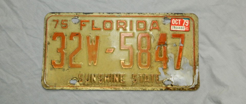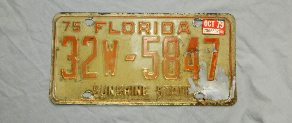 Classic United States Florida 1975 Passenger License Plate # 32W-5847