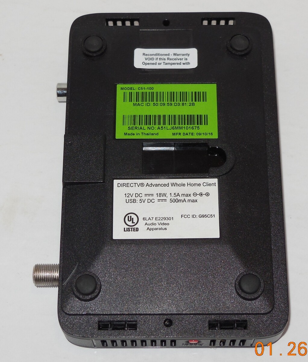 For Sale is a DirecTV Advanced Whole Home Client HDMI C51-100 Direct TV with AC adapter. it in good used condition as seen in the pictures provided what you see is what you will receive. Has been tested and works. Key Features for this Casio Portable Printer are as follows: Please ask Any and All Questions prior to purchasing. Fast Same or Next day shipping with Free Delivery Confirmation within the U.S. Payment Due within 7 days of purchase (if you need more time please let us know In advance) we love to combine shipping is always a Yes and Most of the time Additional Items Ship for free.