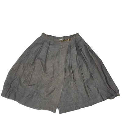 VTG 40s Juniorite Gray Tweed Pleated Wrap Skirt Wool Union Label 23” L/Sz S
