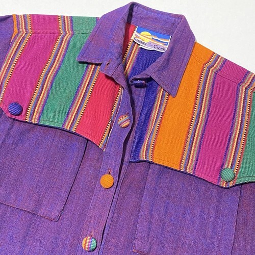 Cricket by the Creek Button Shirt Women M/L Wearable Art Southwest Purple Pocket