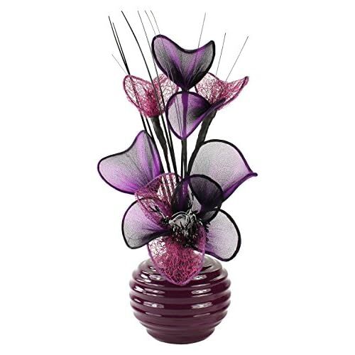 Flourish 791964 - 813 32 cm Vase with Purple/Black Artificial Flower, Purple/Vio