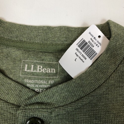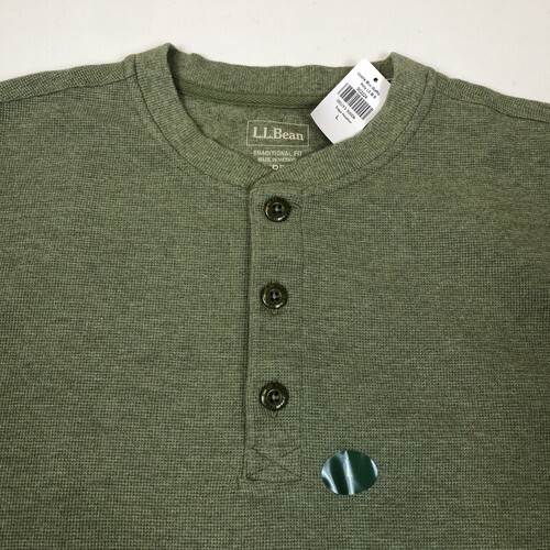 NWT LL Bean Mens Unshrinkable Mini Waffle Knit Thermal Henley Sage Heather Large