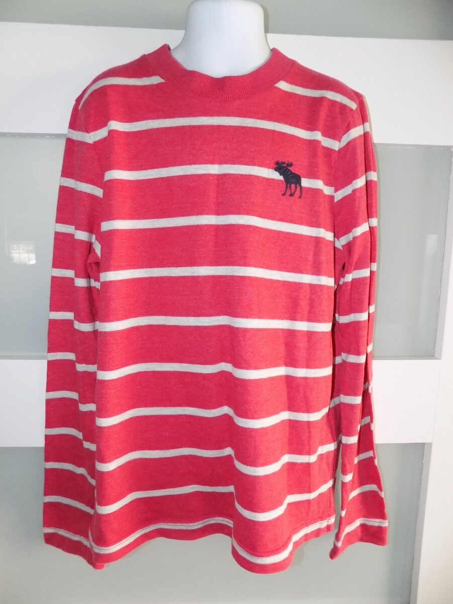 Abercrombie Kids Muscle Fit LS Red Striped Shirt Size M Boy's