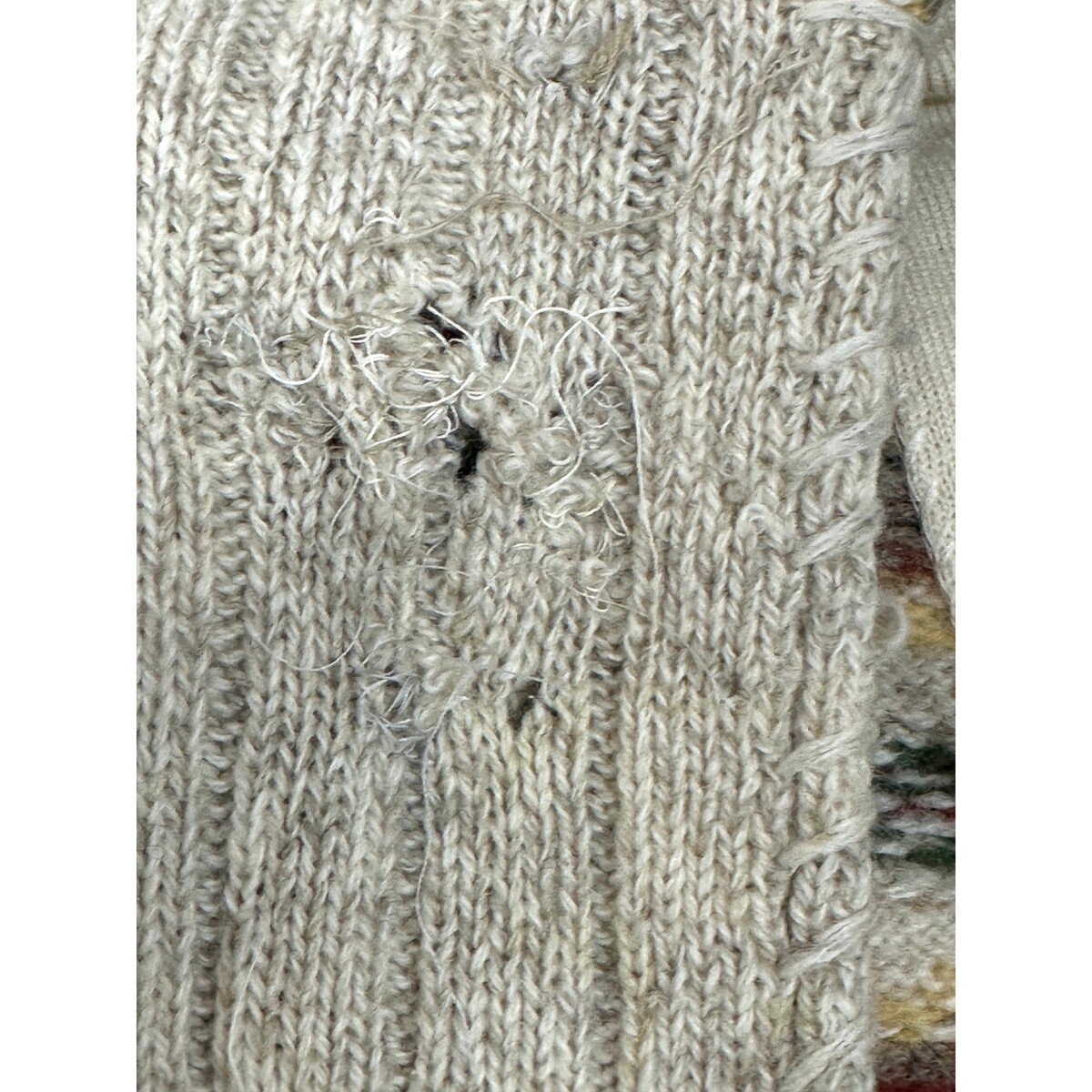 Distressed vintage condition ? with holes and visible repairs (see photos). Worn but structurally solid. Perfect for those who love authentic patina and character in their knits.