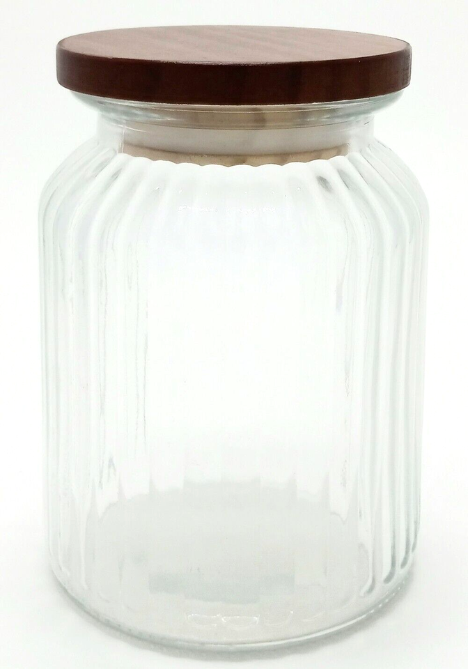 Glass Ribbed Candy Jar 32fl oz with Airtight Lid Collectible Decorative H=6.25in