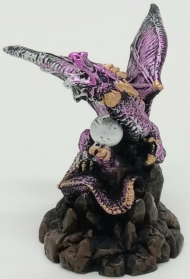 Roaring Medieval Purple Mini Dragon Figurine Holding Crystal H = 3 in