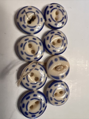 8 Antique Button Blue China Stencil Pattern Diminutive 3/8" Hard To Find.