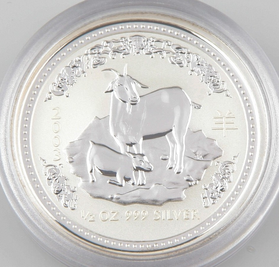 2003 Lunar Year of the Goat Australian Round 1/2 oz 999 Silver BU Condition