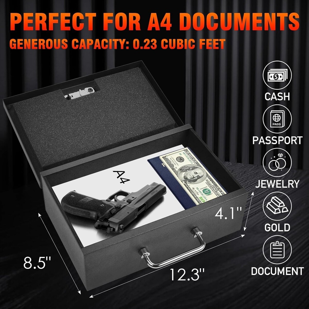 Ideal for both home and on-the-go use, this remarkable safe box combines portability with security, making it the perfect solution for anyone seeking the utmost protection. Don't compromise on safety; invest in our Fireproof Water-Resistant Safe Box today and keep your valuables secure for to come!