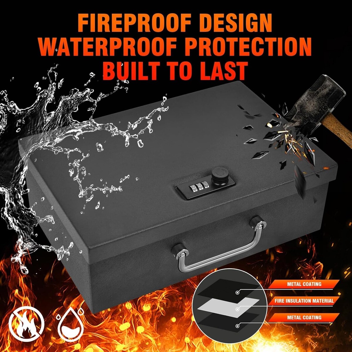 Fireproof & Water-Resistant Safe Box with Combination Lock for Documents & Cash