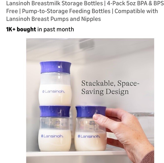 Breastmilk Storage Bottles 4 Count 5oz BPA Free Pump-to Lansinoh 4-Pack BPS-Free