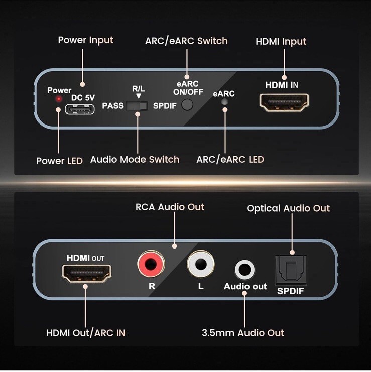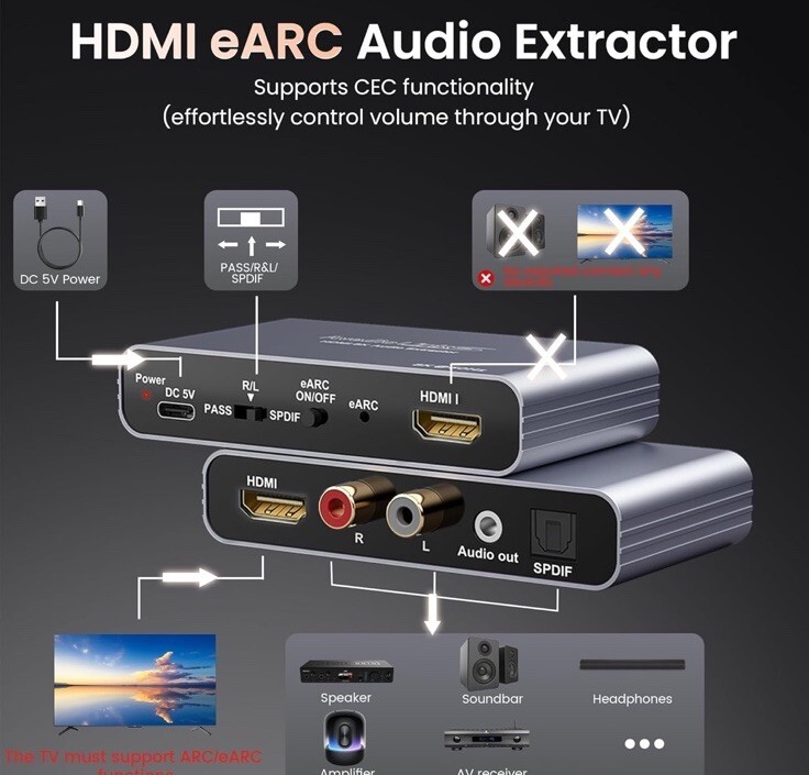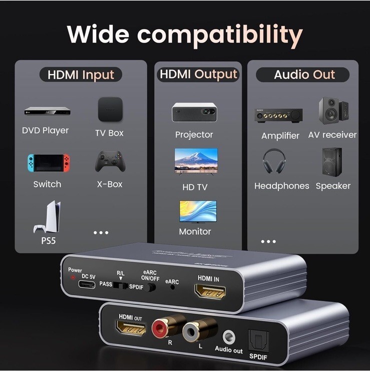 8K Earc HDMI Audio Extractor Converter, 4K@120Hz ARC HDMI Adapter to Optical/Spd