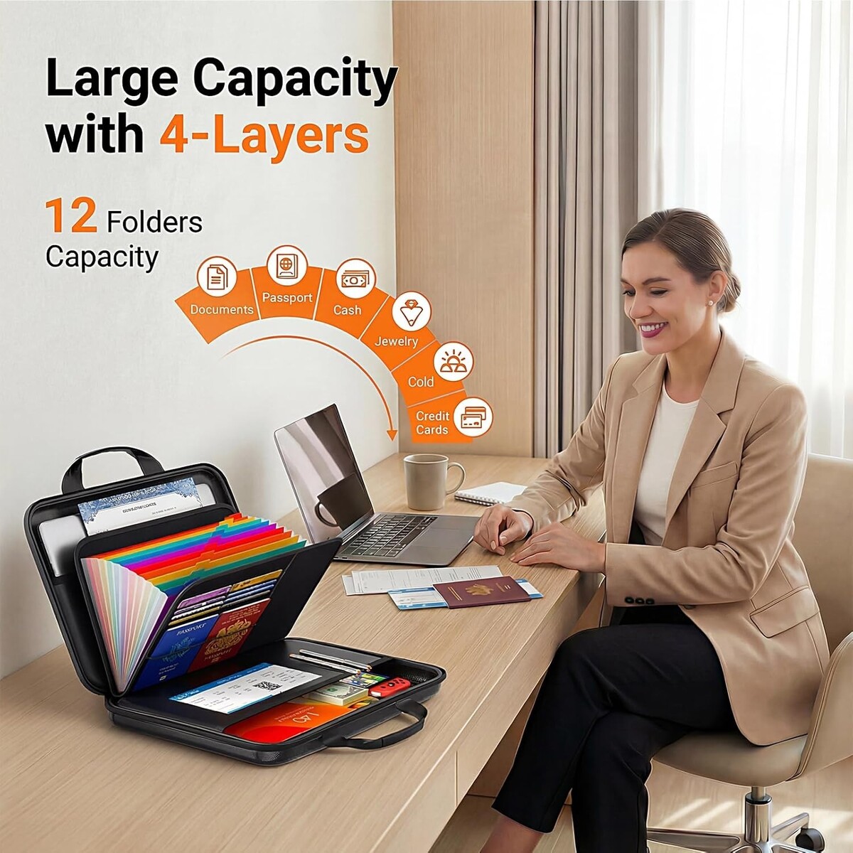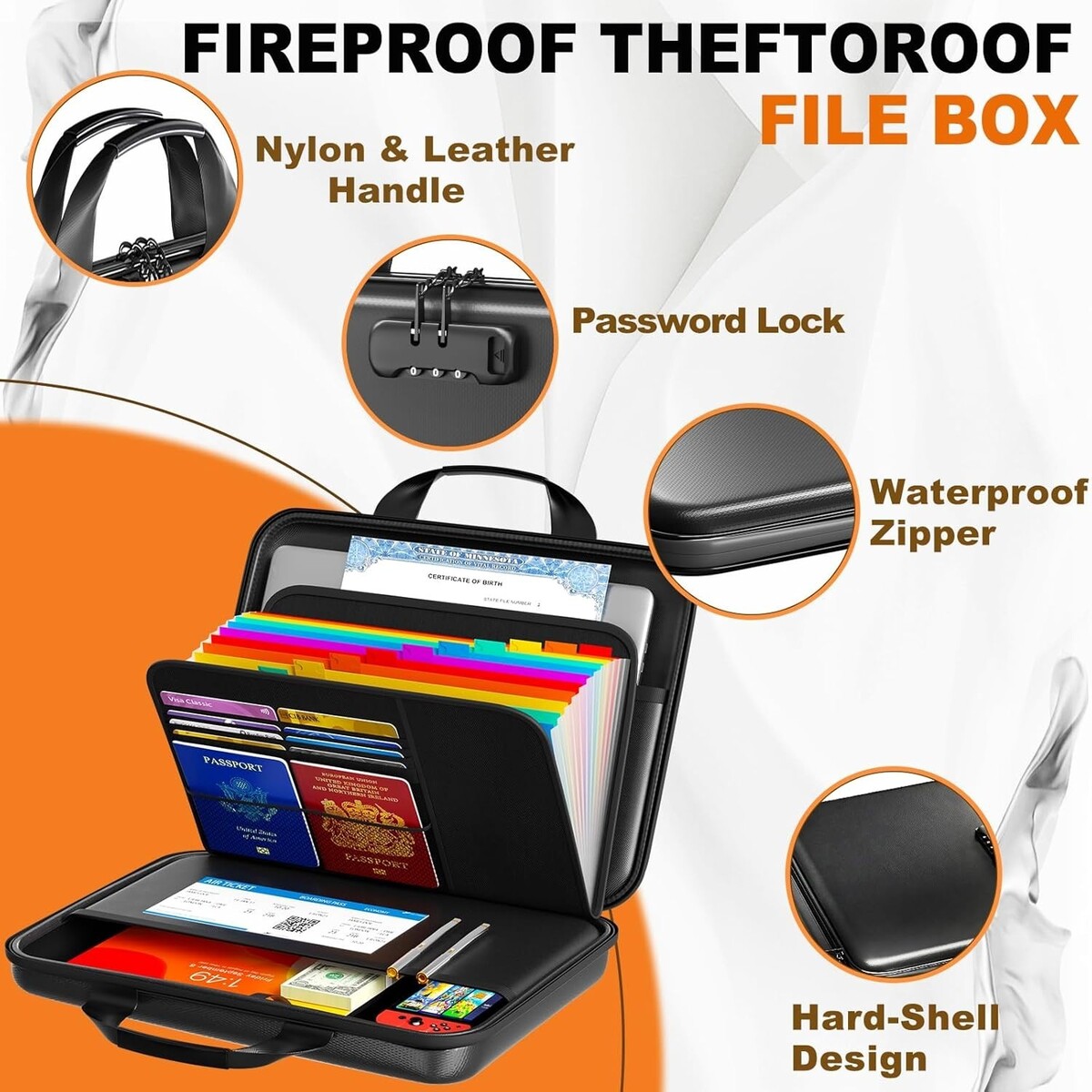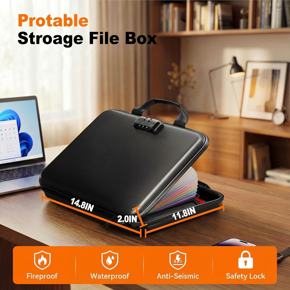 Fireproof Accordion File Organizer with Secure Lock - Portable Document Storage