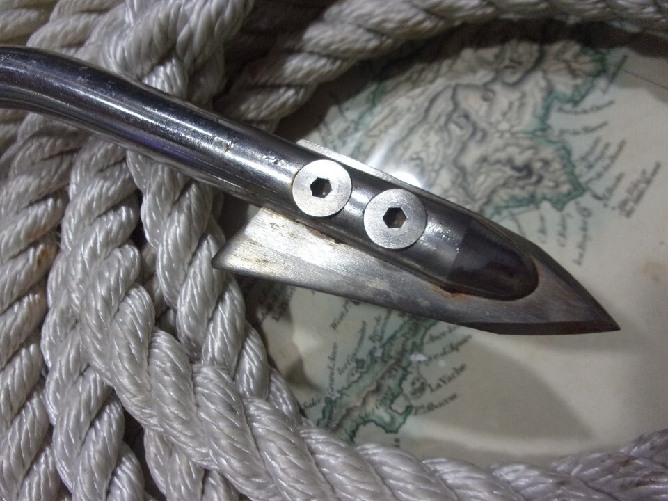 AFTCO flying gaff 316 stainless, 24' 5/8" spliced nylon line with eye 12"x5"x.5"