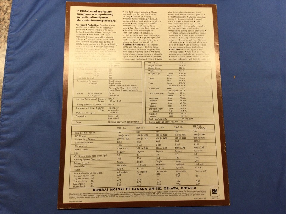 1970 ACADIAN SALES BROCHURE / ORIGINAL 10 PAGE G.M. OF CANADA CATALOG SS & MORE!