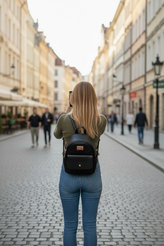 Ihayner ladies Backpack Black Faux Leather Gold Hardware