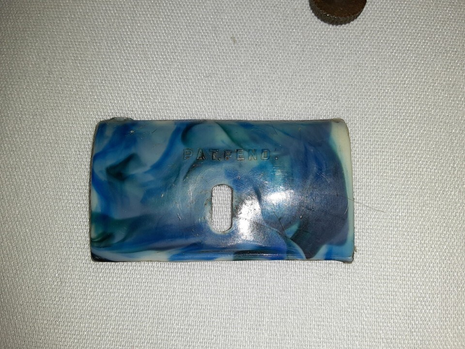 This is a Vintage Pocket Sized Razor Comb Hair Trimmer. It has a blue white marbled color.