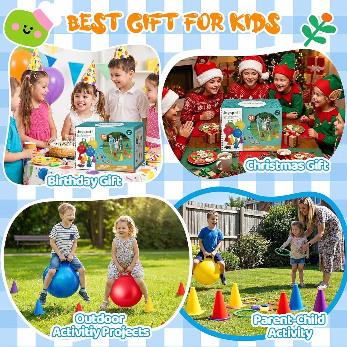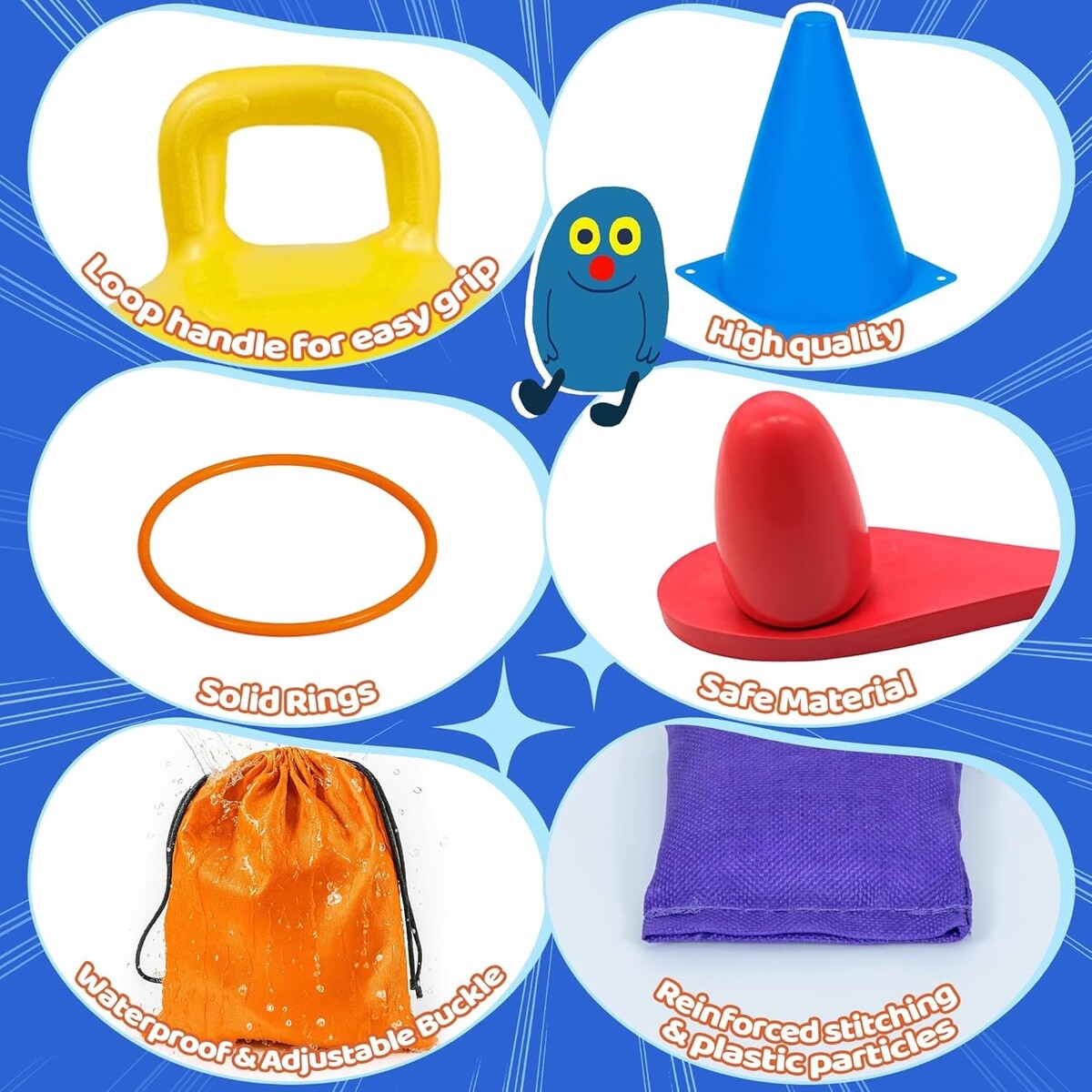 Unleash creativity by combining bean bags, cones, rings, and more to create DIY obstacle courses or holiday relay races. Whether it's a snowy afternoon or a festive backyard BBQ, this versatile kit offers countless combinations to keep children engaged and active.