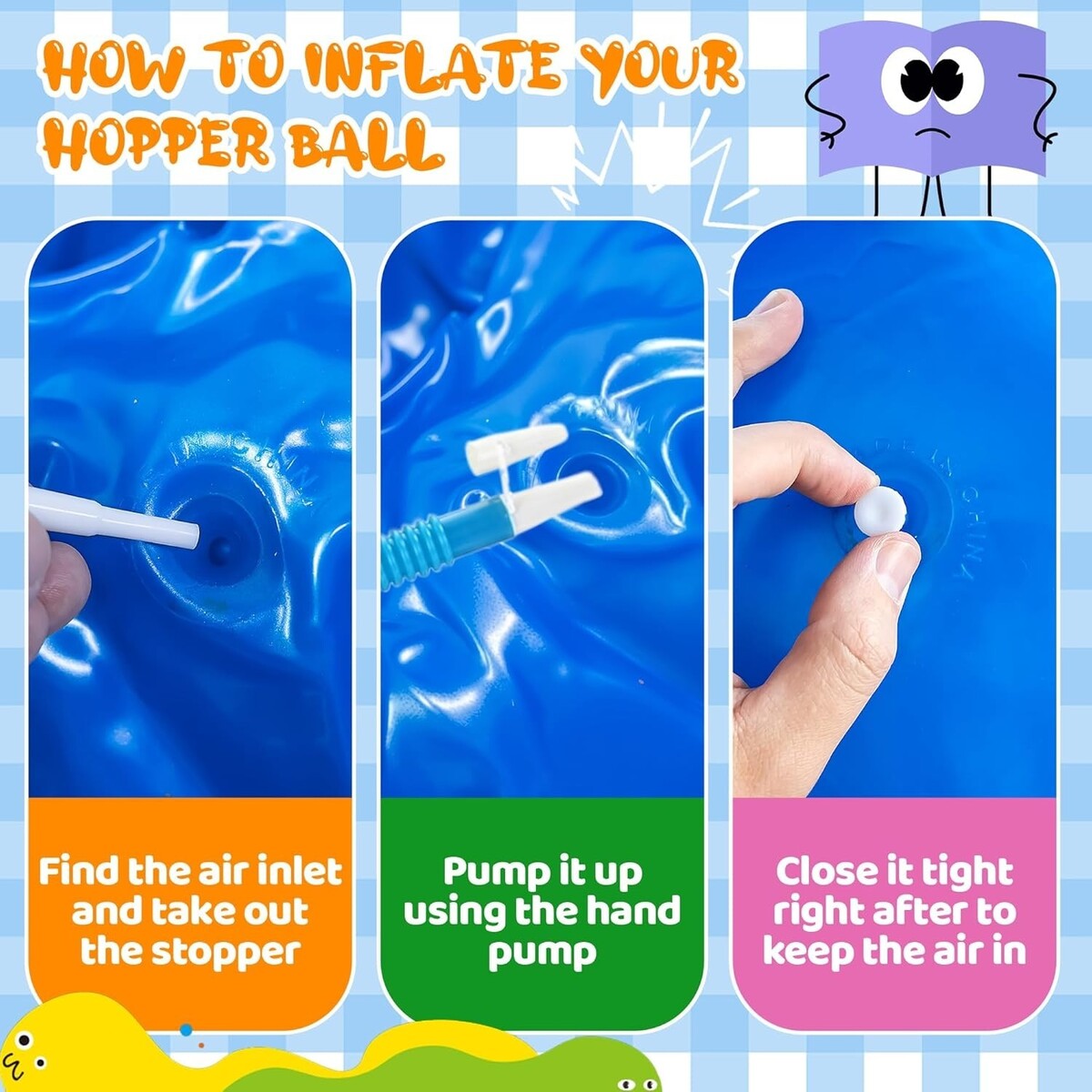 Hopper balls made of thick, heavy-duty PVC with anti-burst technology for safe play