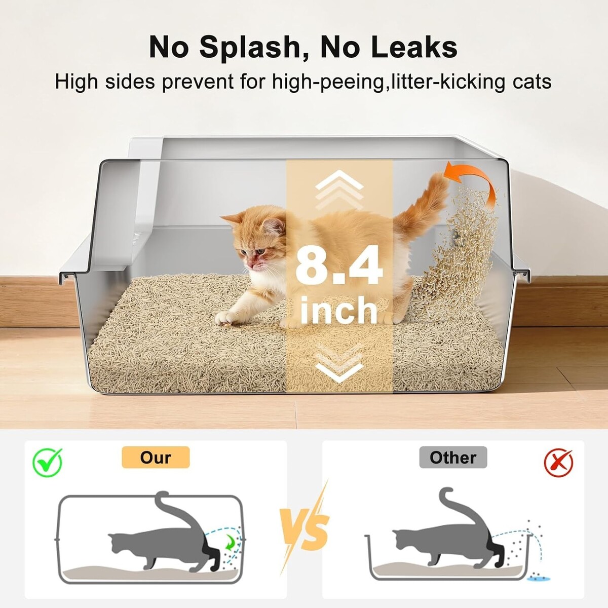 High-Sided Urine Leak Prevention: Upgraded lock design keeps urine contained, perfect for cats who kick litter and have high pee habits.