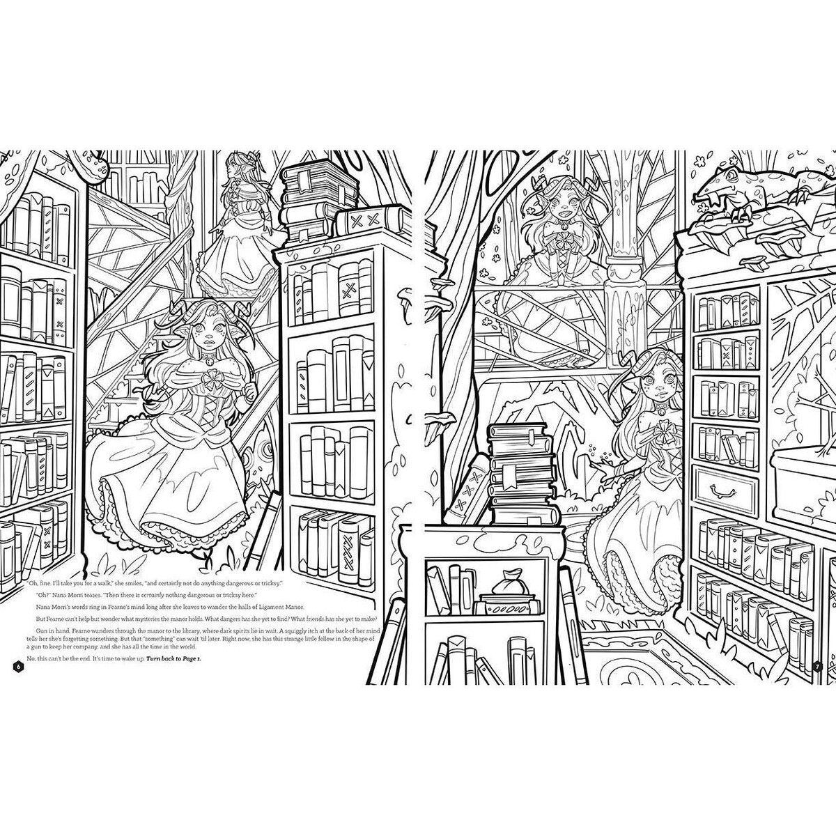 As you travel through this enchanting realm, you?ll encounter strange landscapes, eerie creatures, and surprising allies. Along the way you will help guide Fearne and Bells Hells through magical crossroads and challenges, coloring your way through the story while choosing which path to follow.