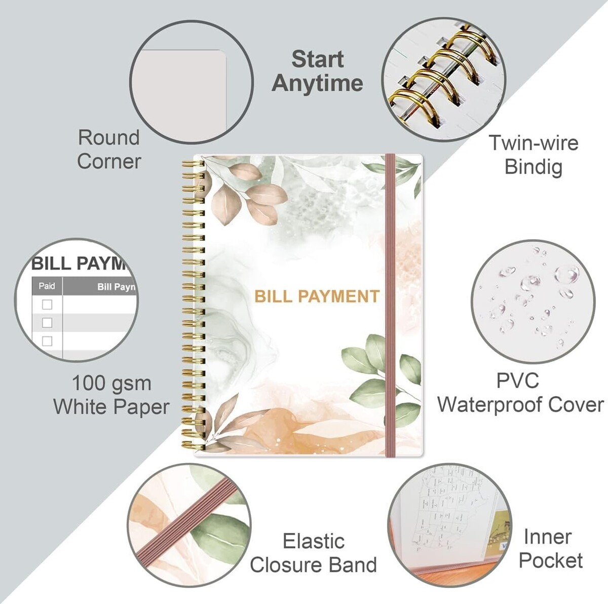 Rose Leaf Bill Tracker Planner - Essential Monthly Organizer for Smart Budgeting