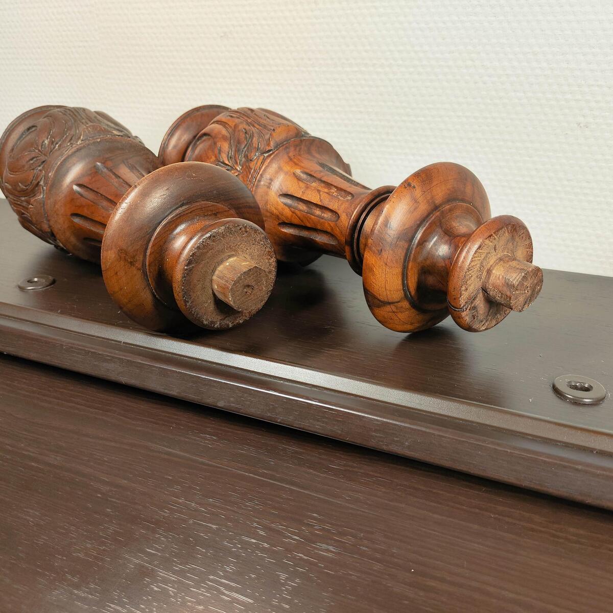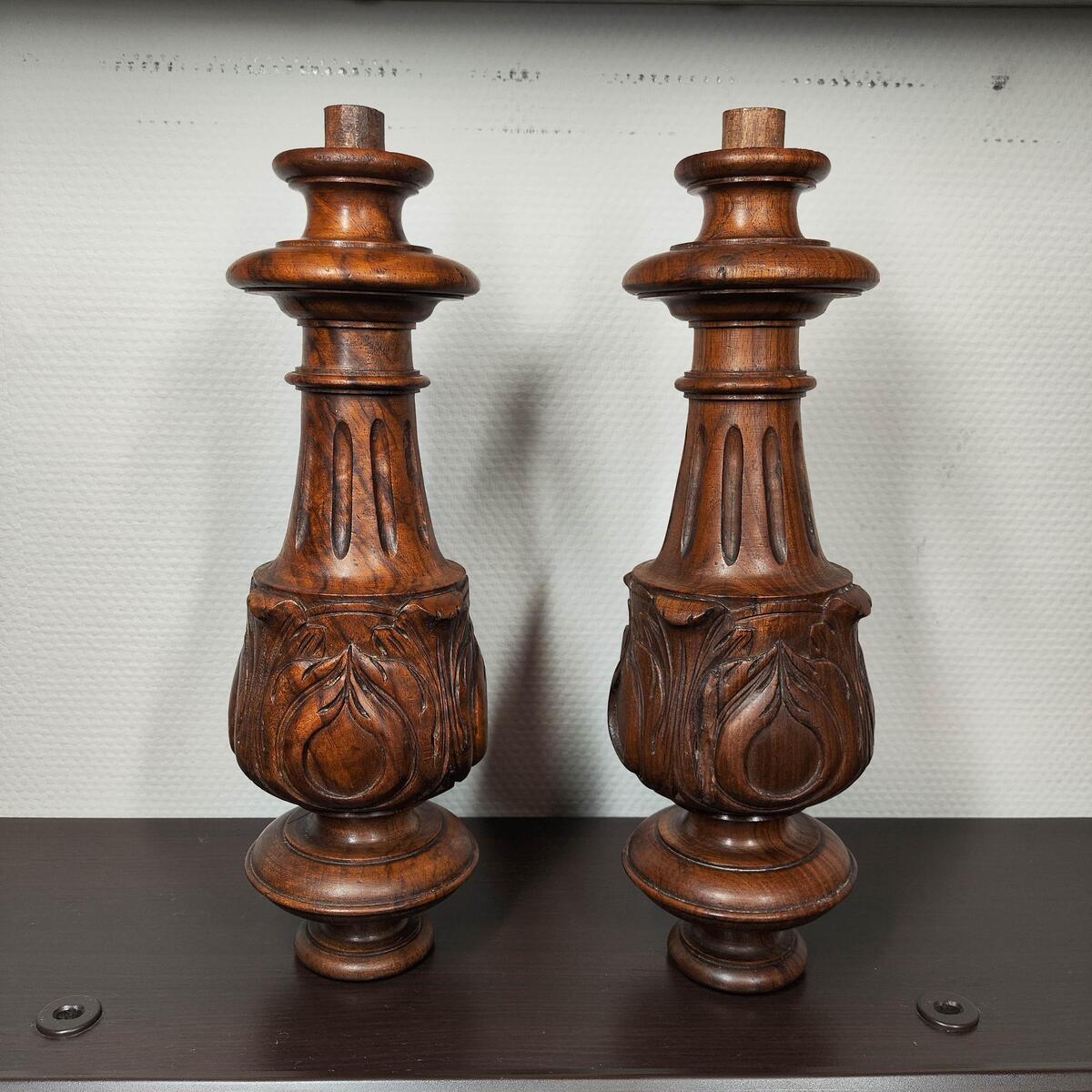 Pair of Antique French Walnut Hand-Carved Columns Finials / spindles / pillars 1