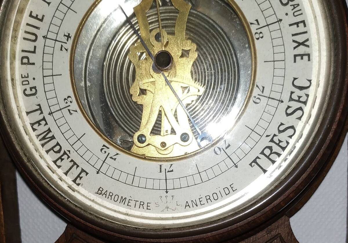 Circa 1900 Antique French Aneroid Barometer & Thermometer by Samy et Lévy