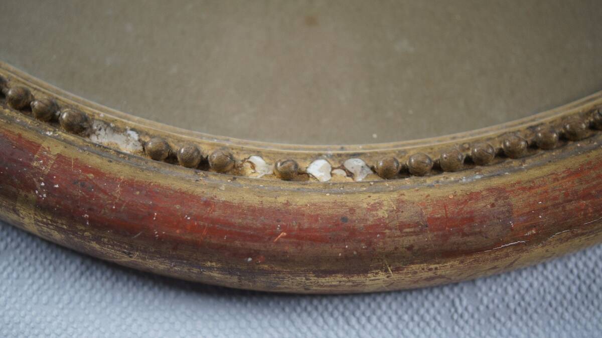 Original Frame: Period-correct oval wooden frame with original gilding and a beaded inner border.