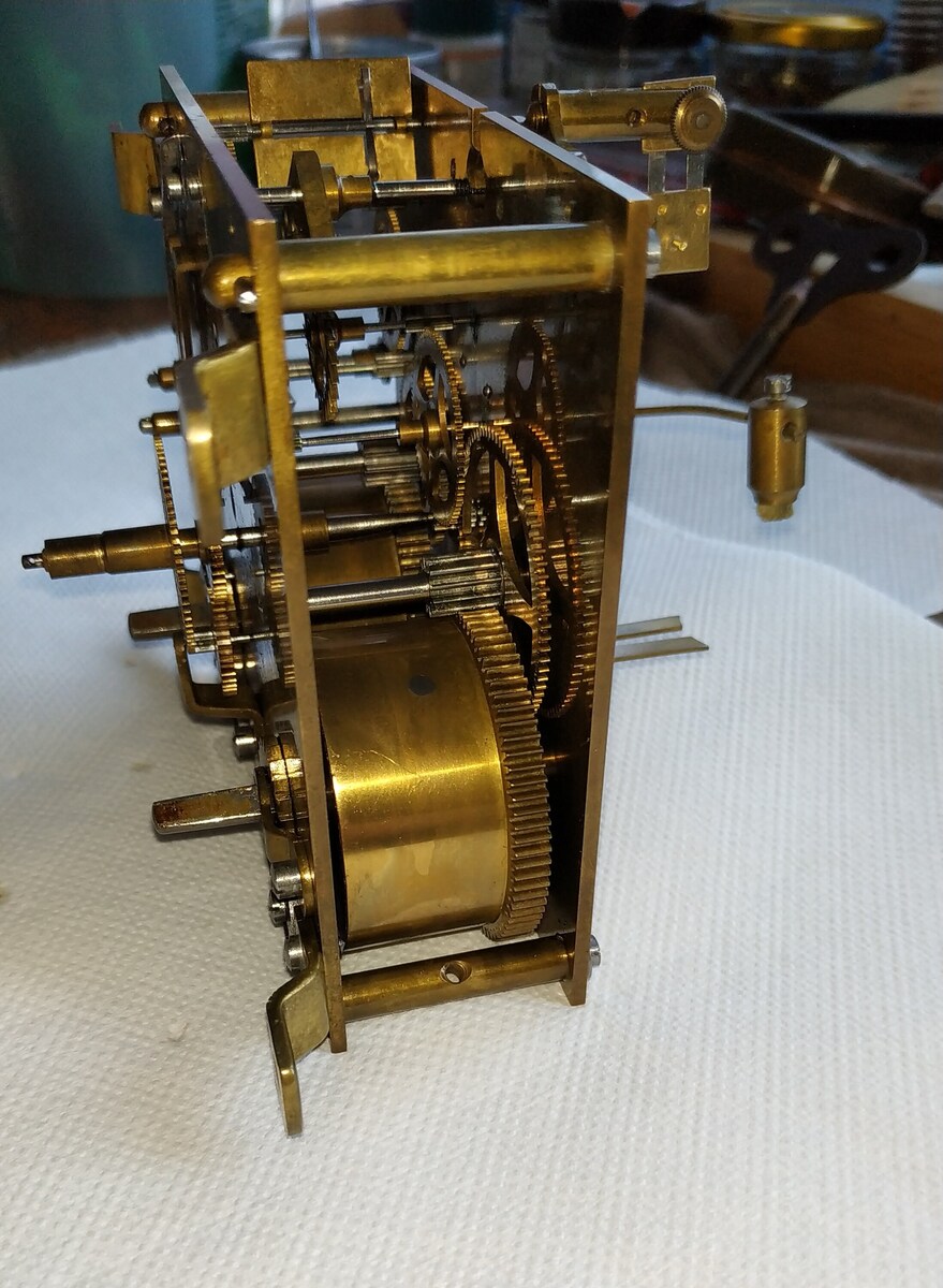 The clock mechanism was cleaned during disassembly, has been oiled, and is running perfectly