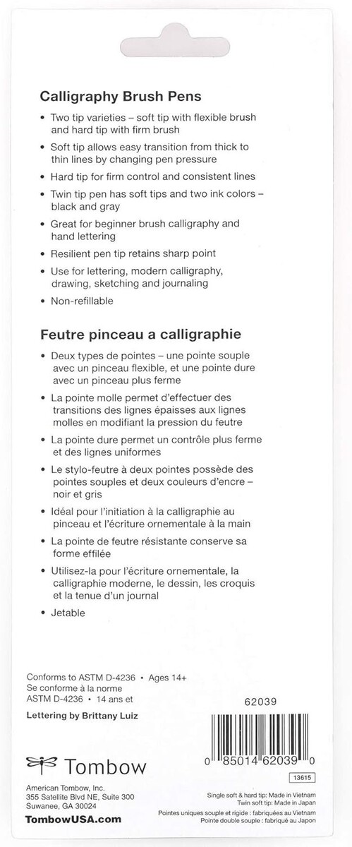 Contains three versatile brush pens: Soft tip, Hard tip, and Twin tip.