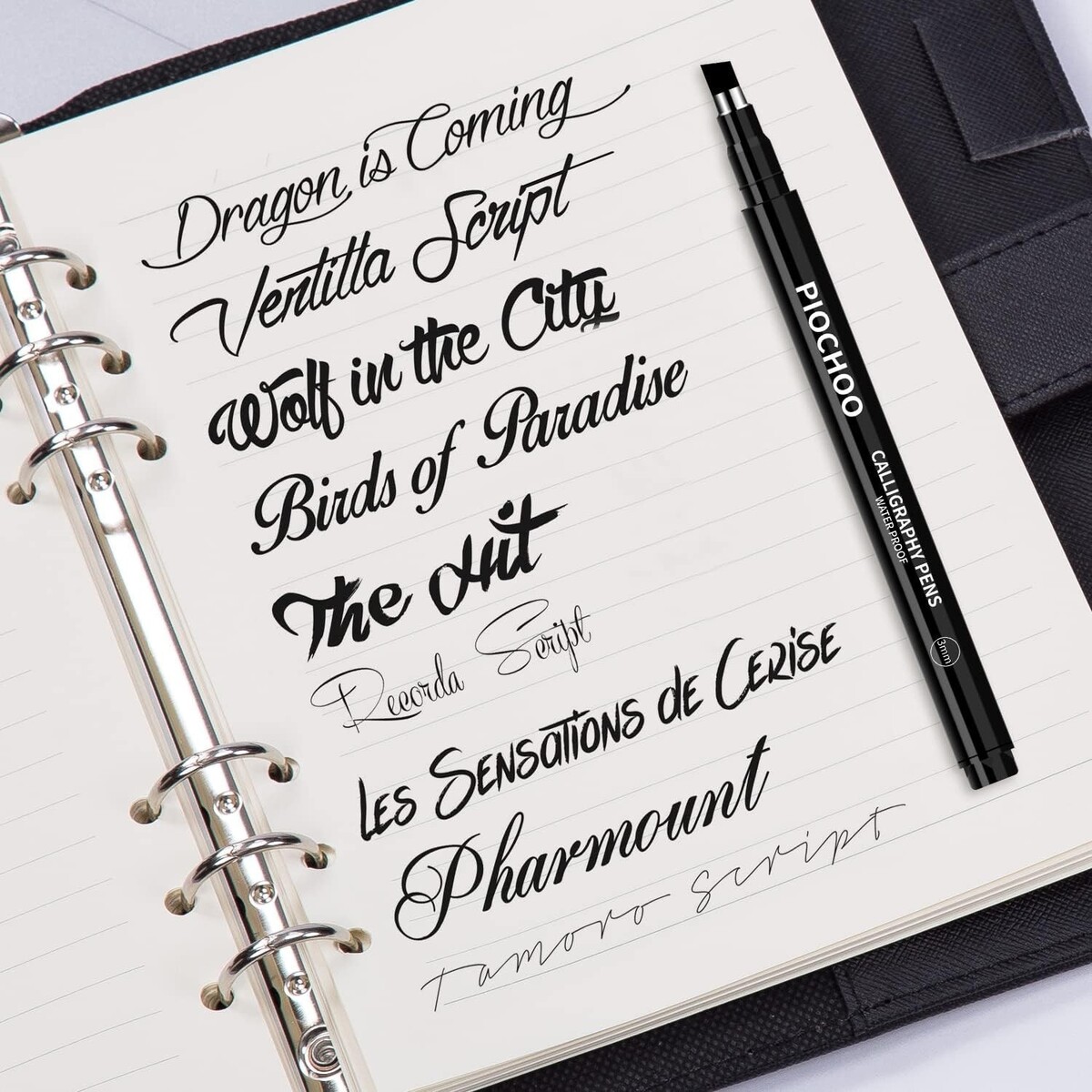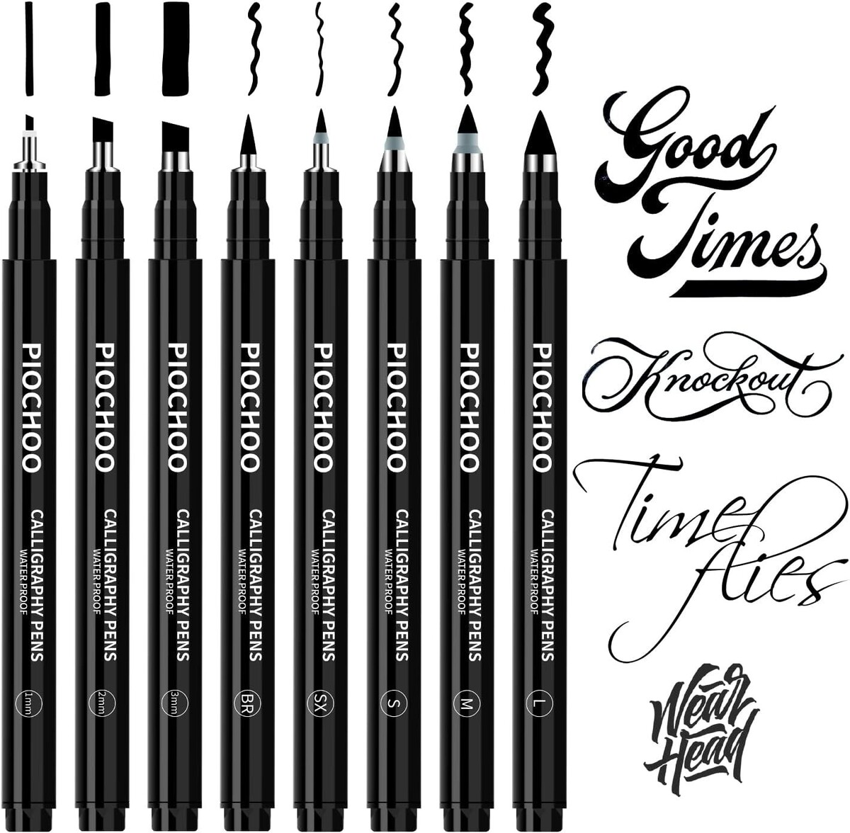 Different Size Nibs: Includes 1mm, 2mm, 3mm, extra-fine, fine, medium, brush, and soft brush nibs for diverse hand lettering and calligraphy styles.