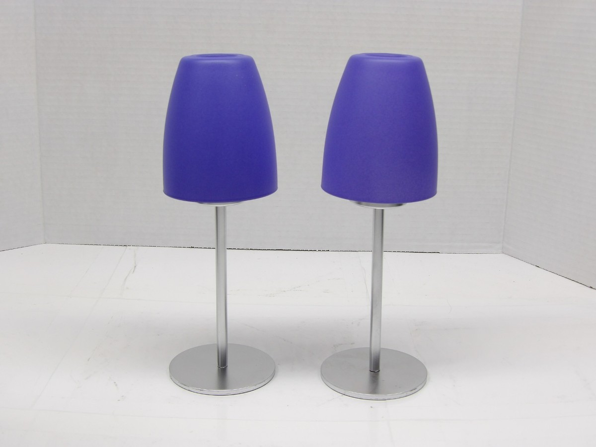 Casual Tealight Candle Holder Set of 2 Lamp Style Frosted Blue Glass Shades New