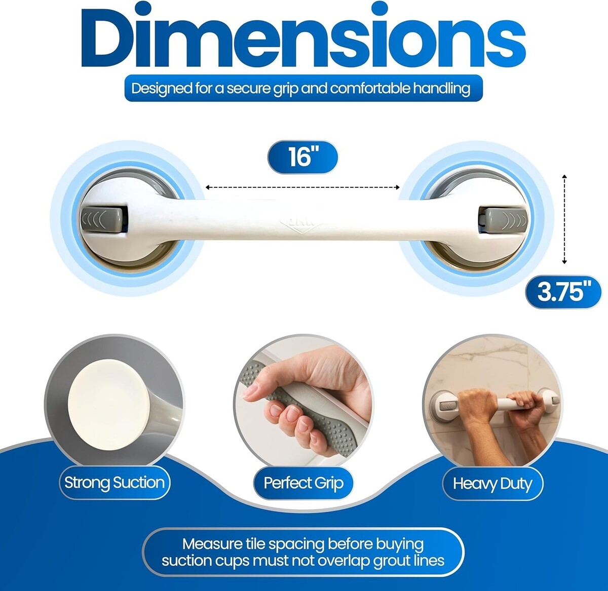 16-Inch Suction Cup Grab Bar in White Grey ? Ultimate Bathroom Safety Handle
