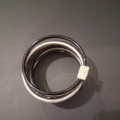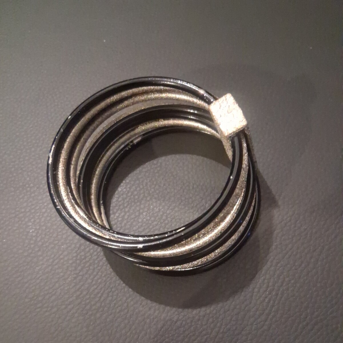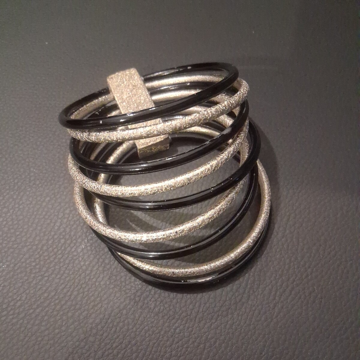 Vintage Mod Multi Bangel Bracelets Silver and Black 9 bracelets 2 1/2 in wide