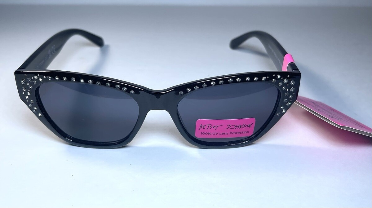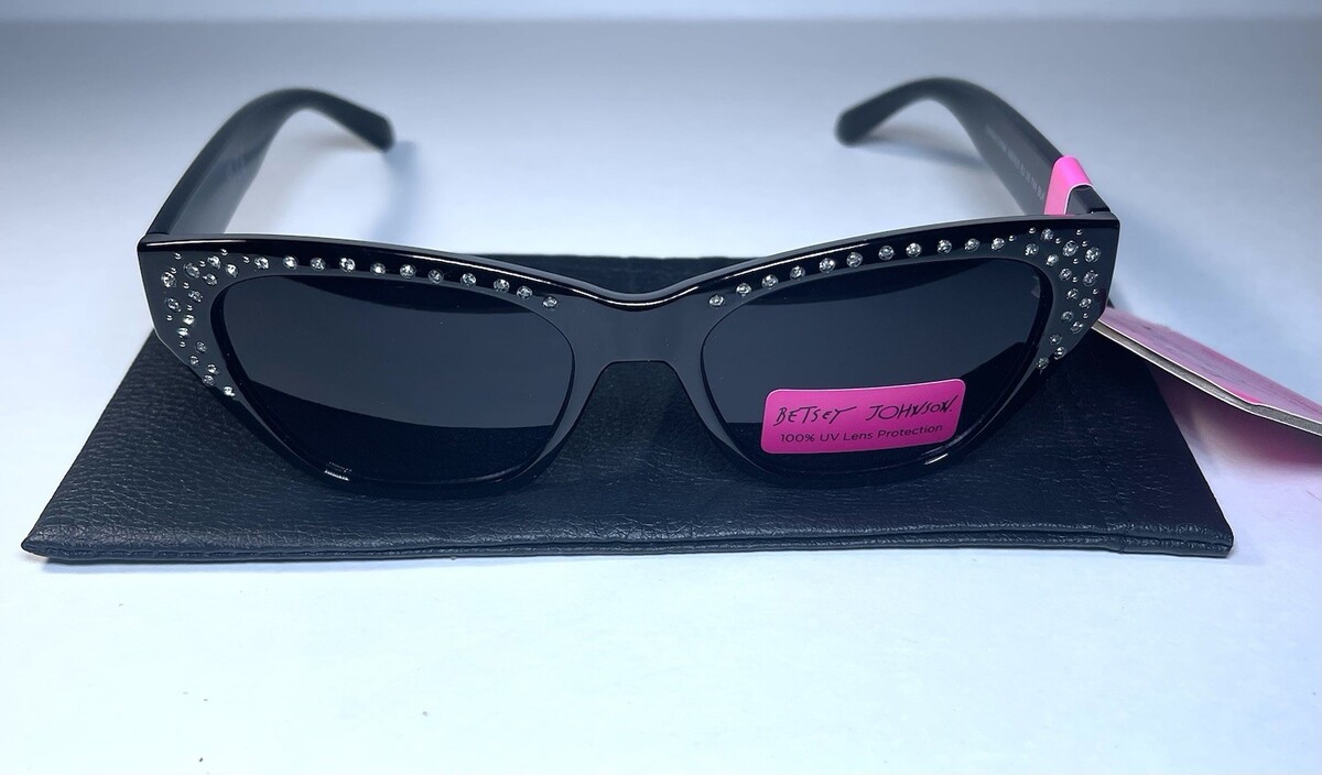 NEW BETSEY JOHNSON Cat Eye Black Rhinestone BJ26764 Sunglasses + Case